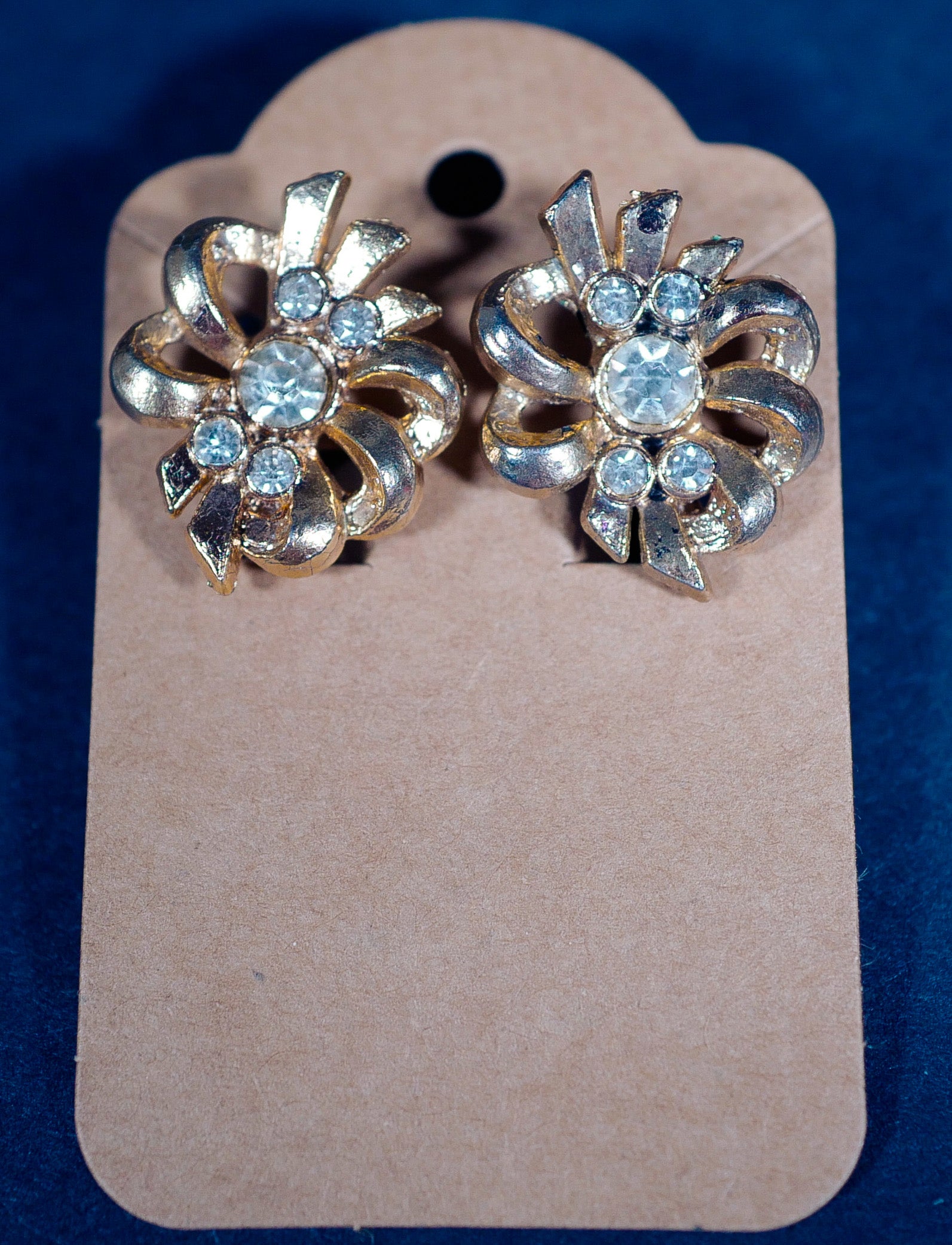 Vintage costume earrings of unknown materials. No pierced ears required. Good condition.