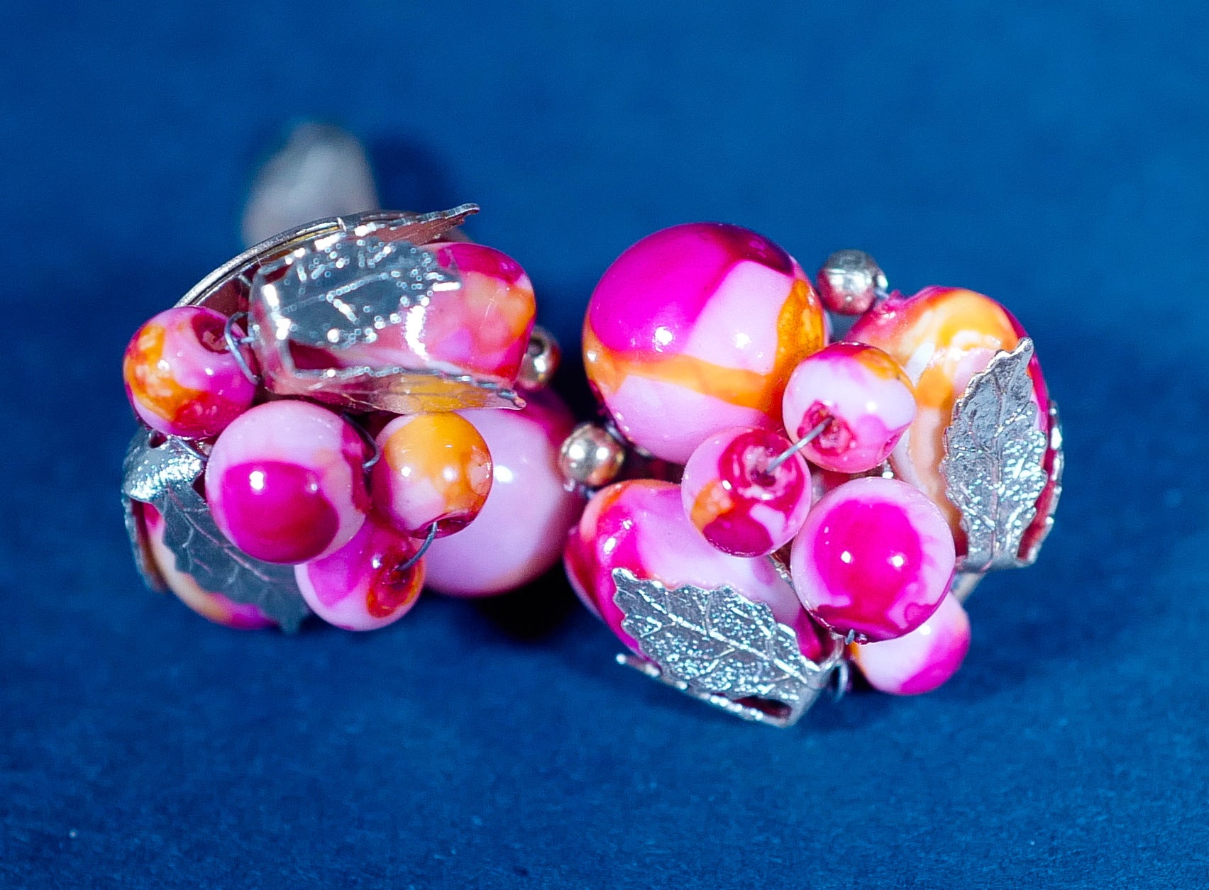 Vintage costume earrings of unknown materials. No pierced ears required. Good condition.