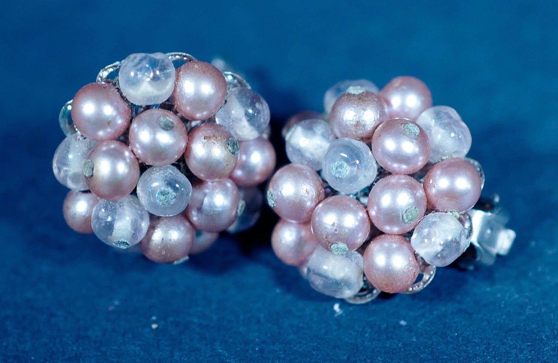 Vintage costume earrings of unknown materials. No pierced ears required. Good condition.