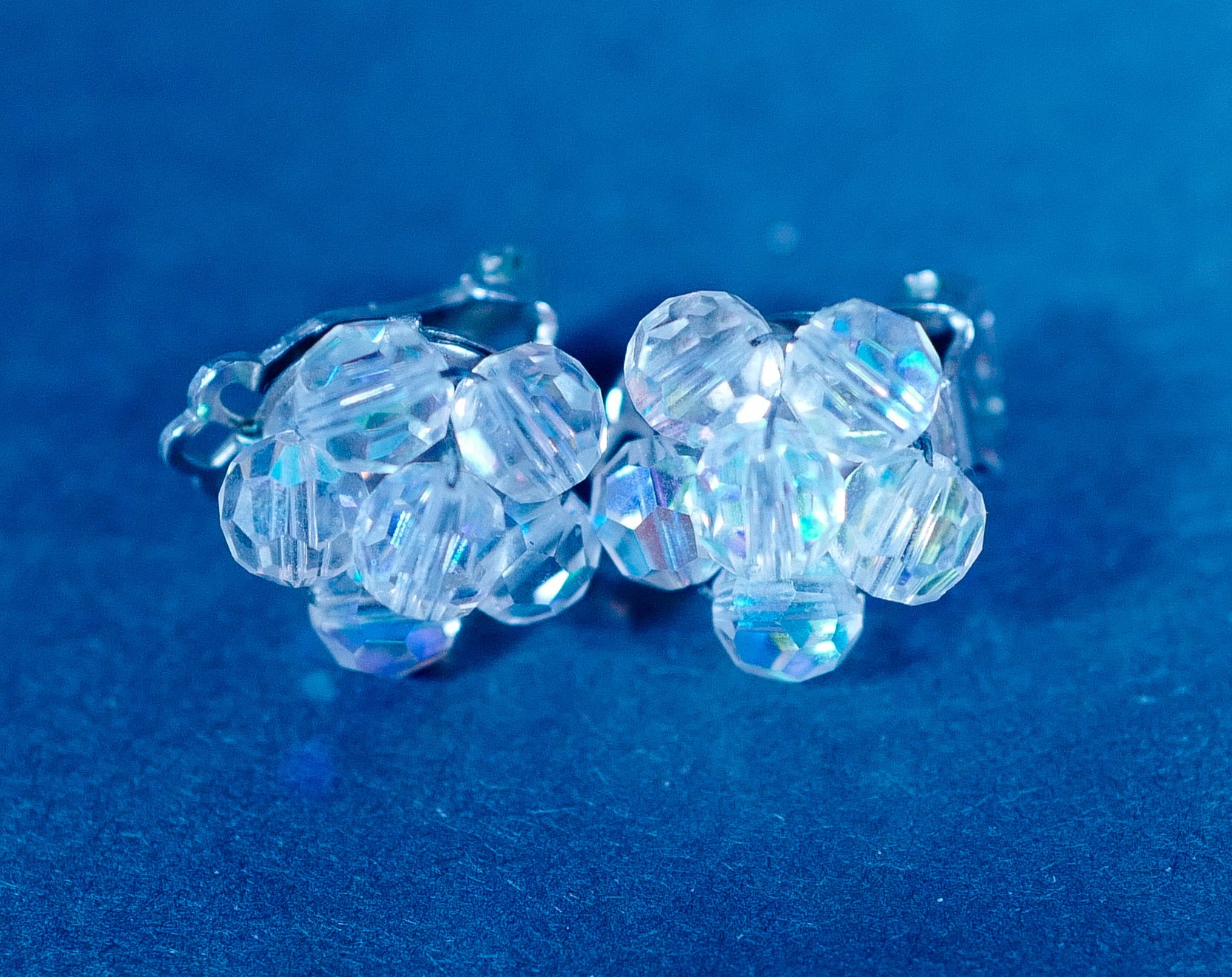Vintage costume earrings of unknown materials. No pierced ears required. Good condition.