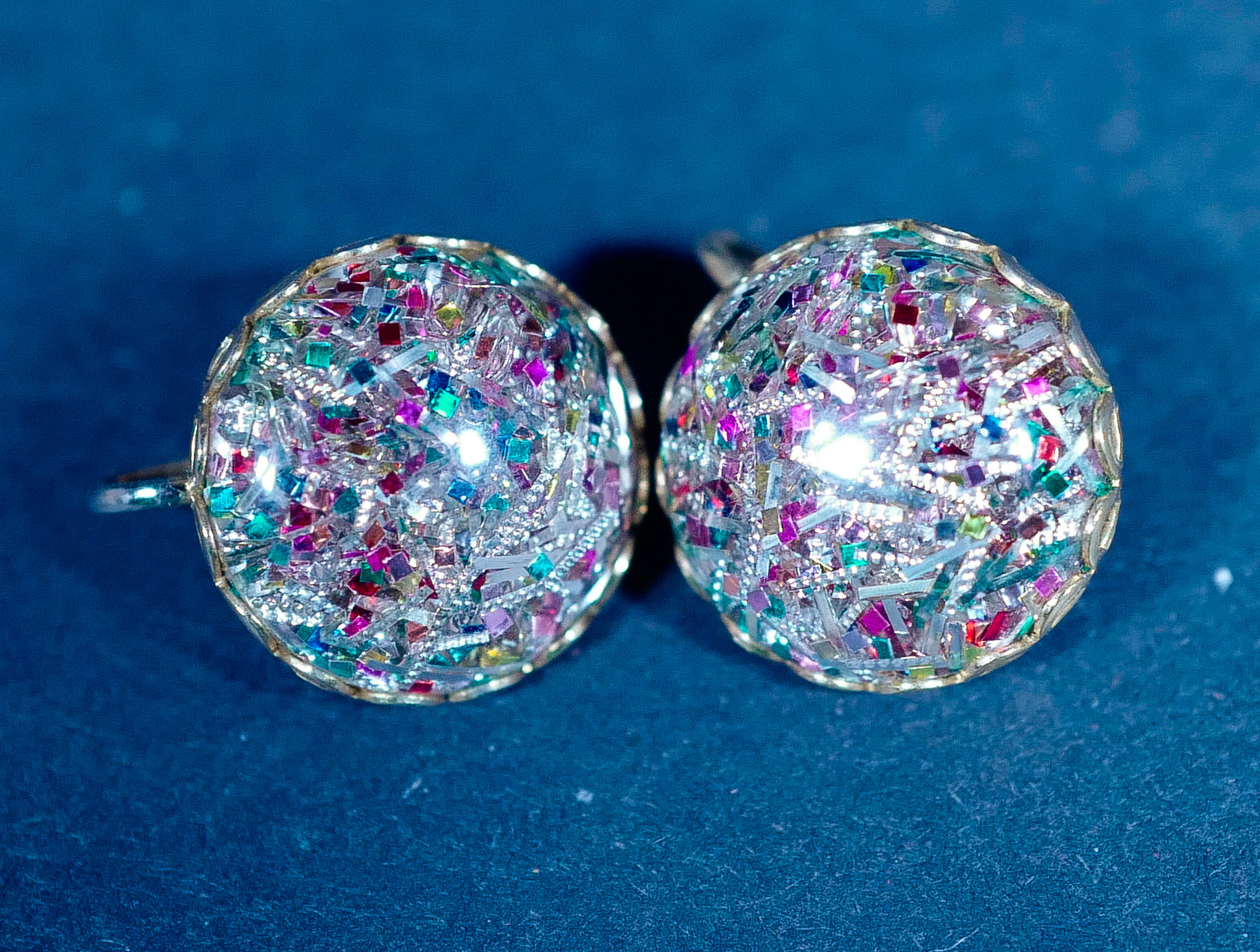 Vintage costume earrings of unknown materials. No pierced ears required. Good condition.