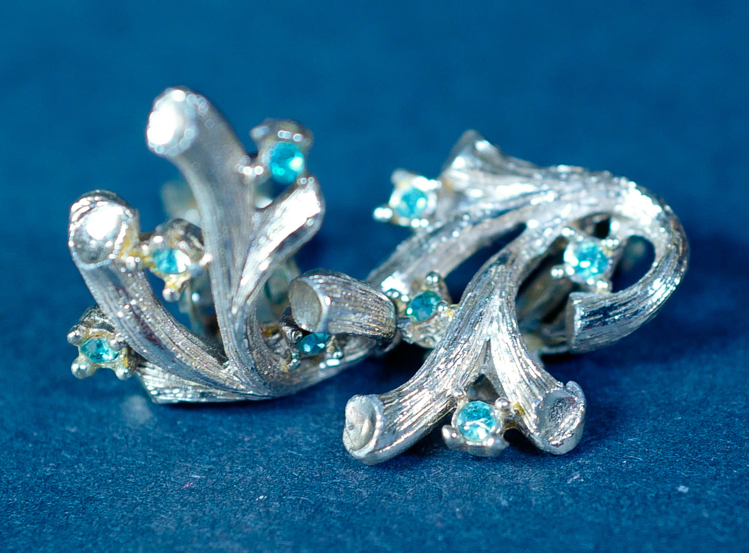 Vintage costume earrings of unknown materials. No pierced ears required. Good condition.