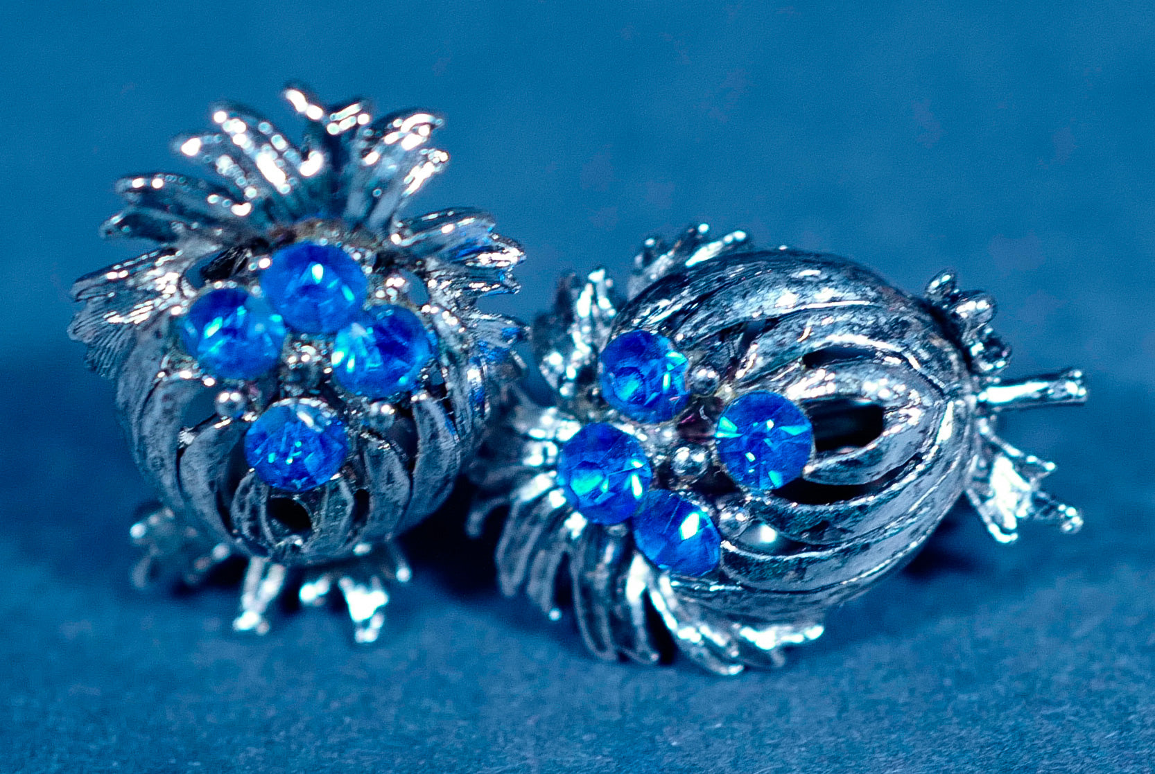 Vintage costume earrings of unknown materials. No pierced ears required. Good condition.