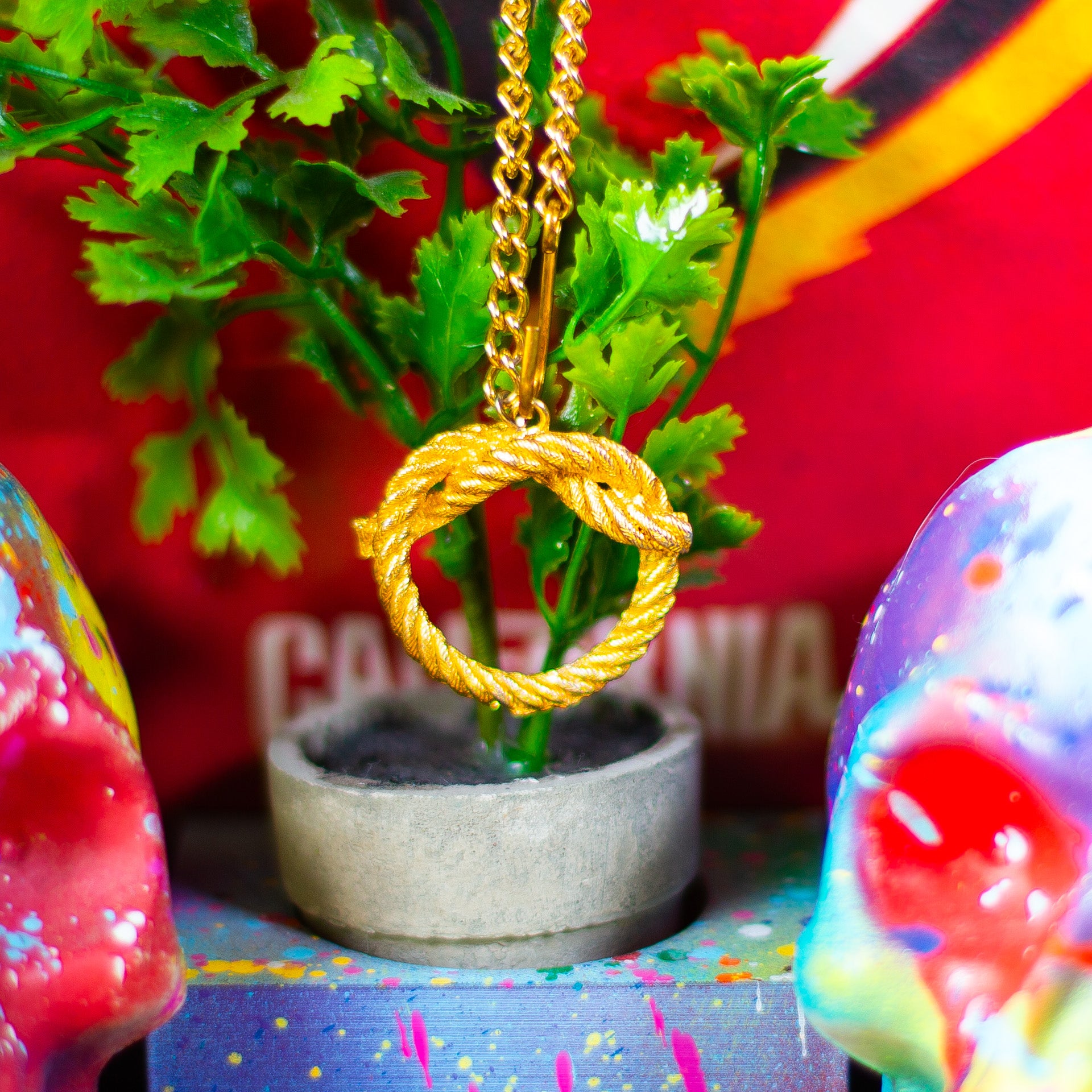 Vintage Hook Clasp Gold Plated Knot Pendant Necklace
