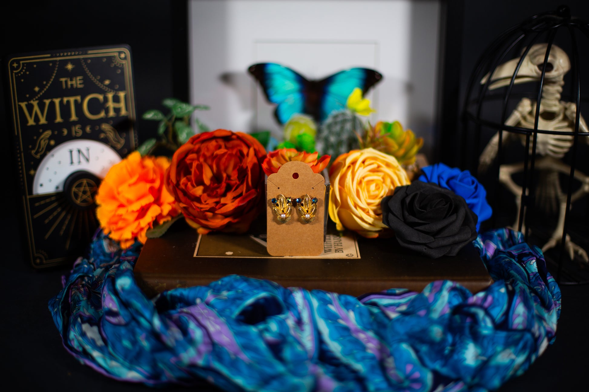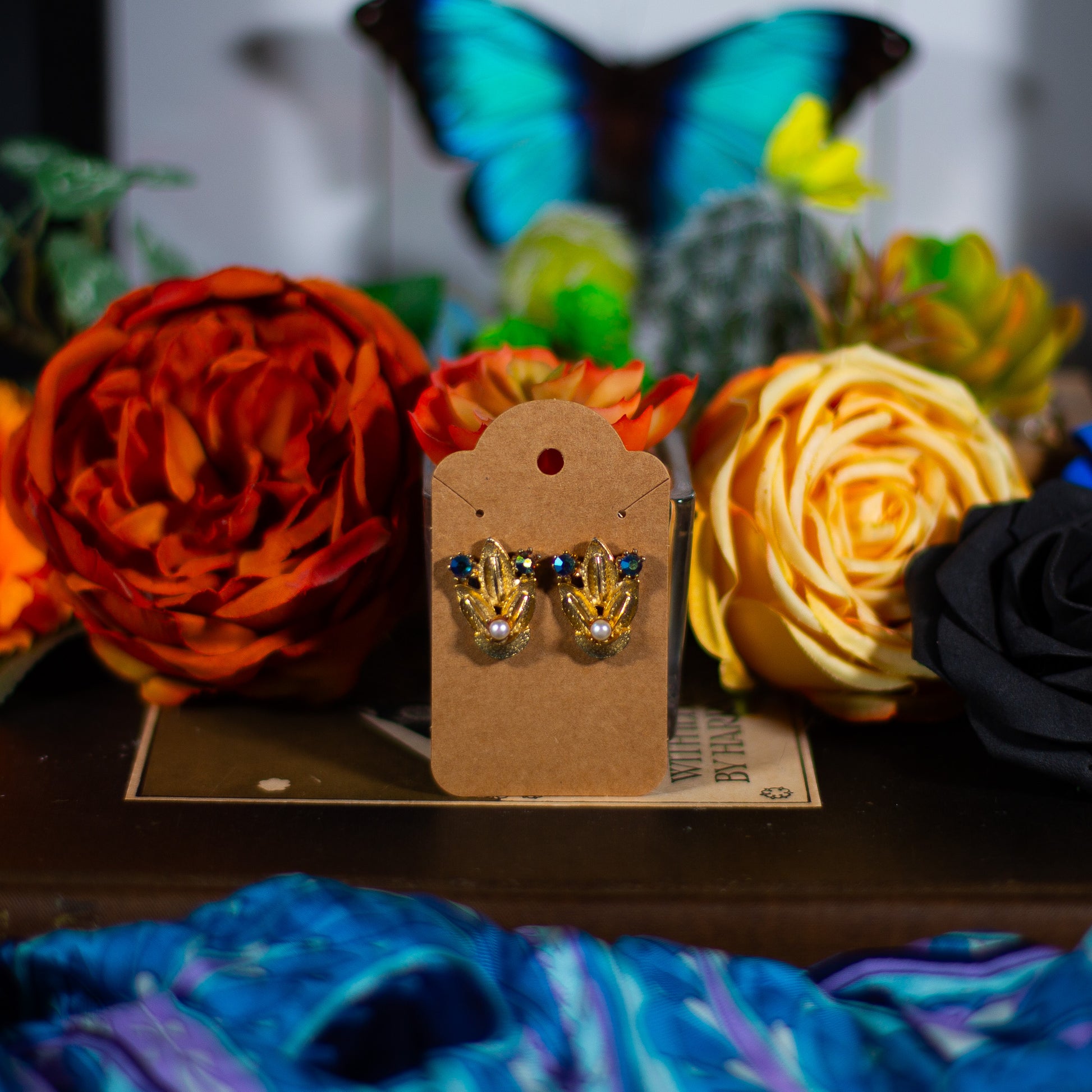 Vintage costume earrings of unknown materials. No pierced ears required. Good condition.