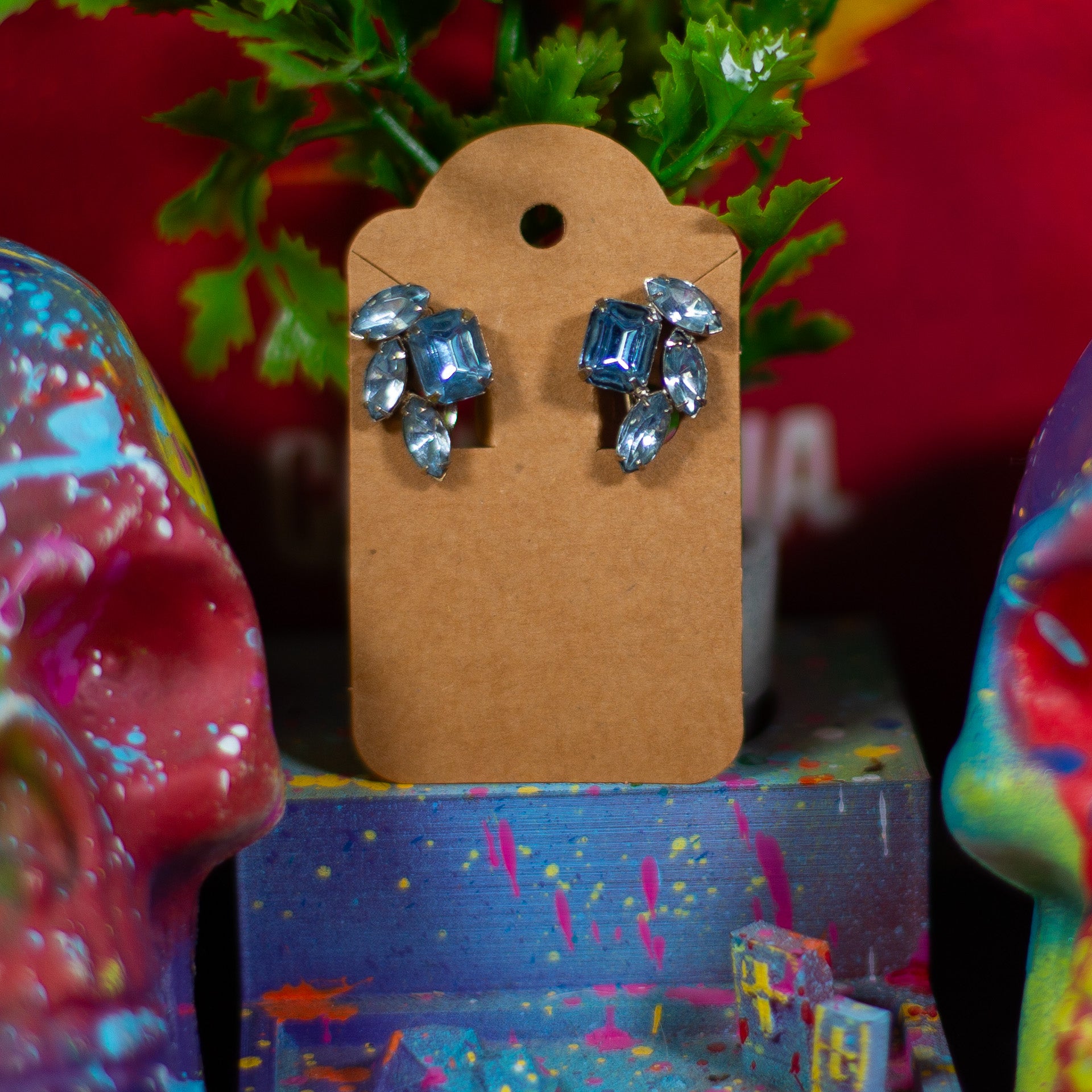 Vintage Screw-Back Faux Aquamarine Cluster Earrings