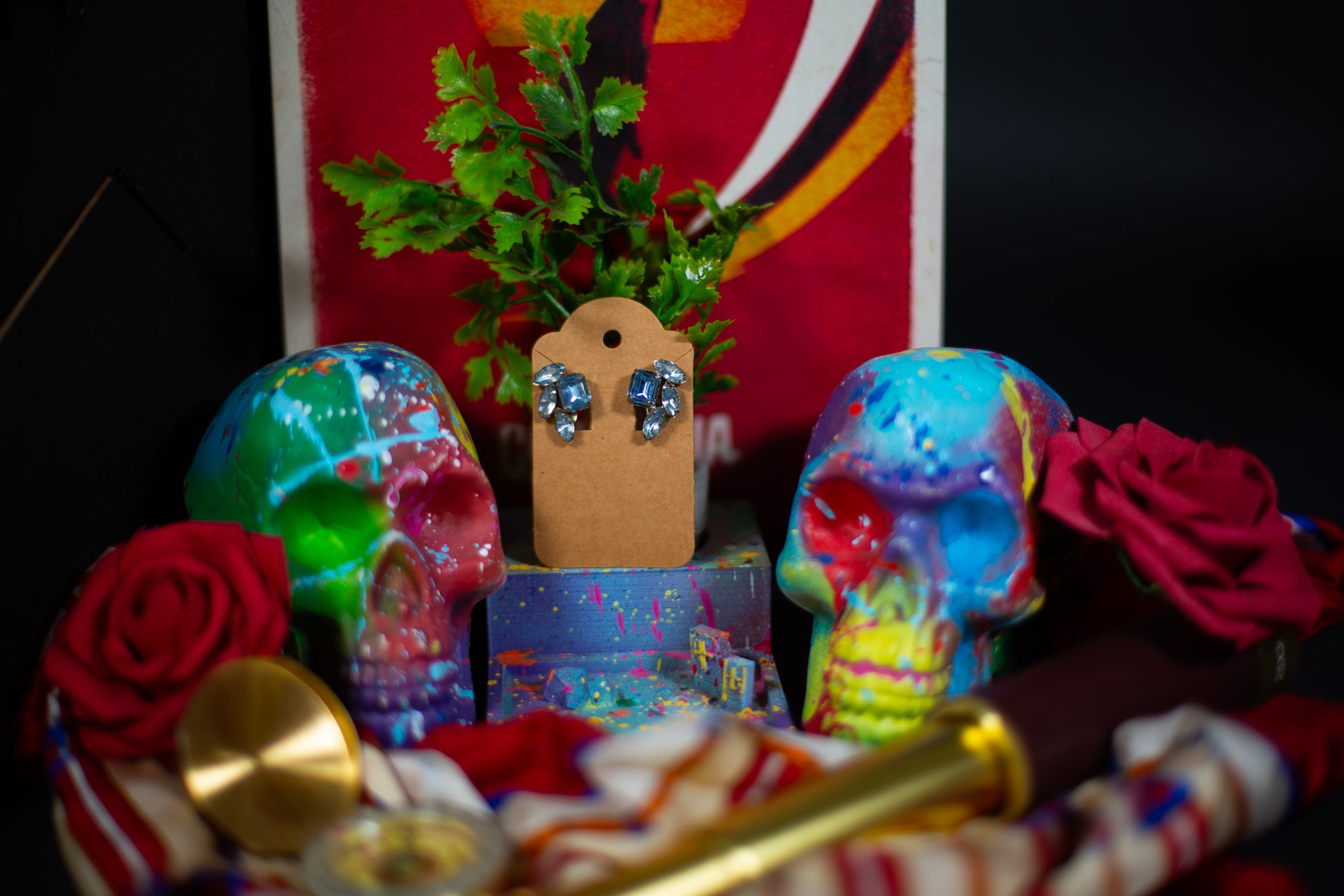 Vintage costume earrings of unknown materials. No pierced ears required. Good condition.