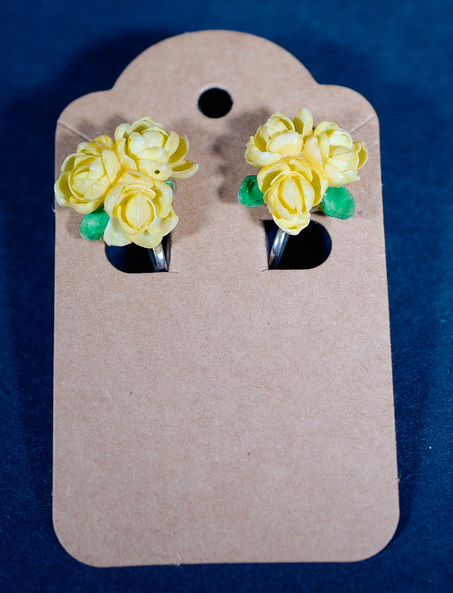 Vintage costume earrings of unknown materials. No pierced ears required. Very delicate, in good condition.
